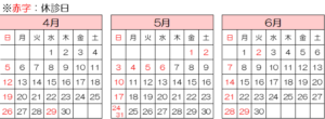 4月から6月までの休診日について